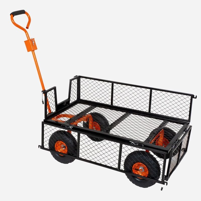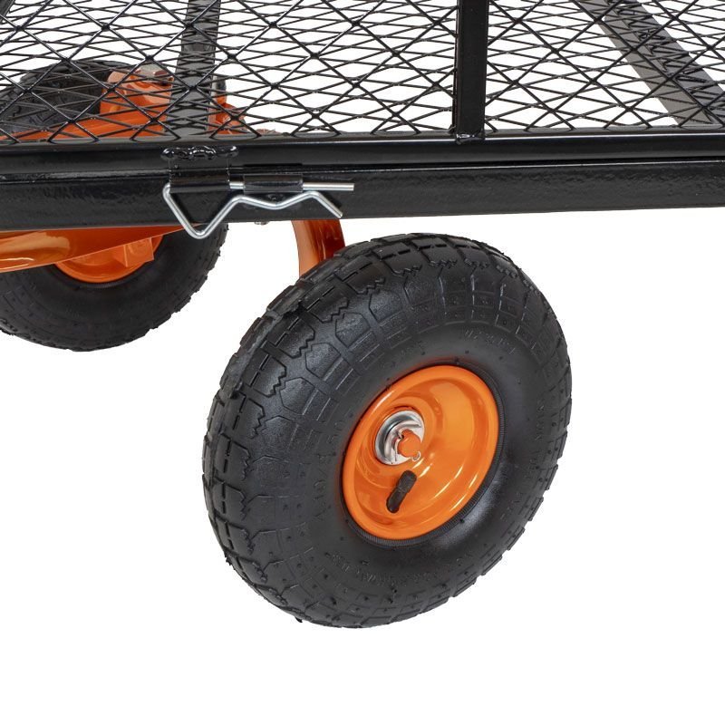Ce chariot de jardin avec châssis en acier permet le transport aisé de vos charges lourdes et encombrantes jusqu’à 300Kg.