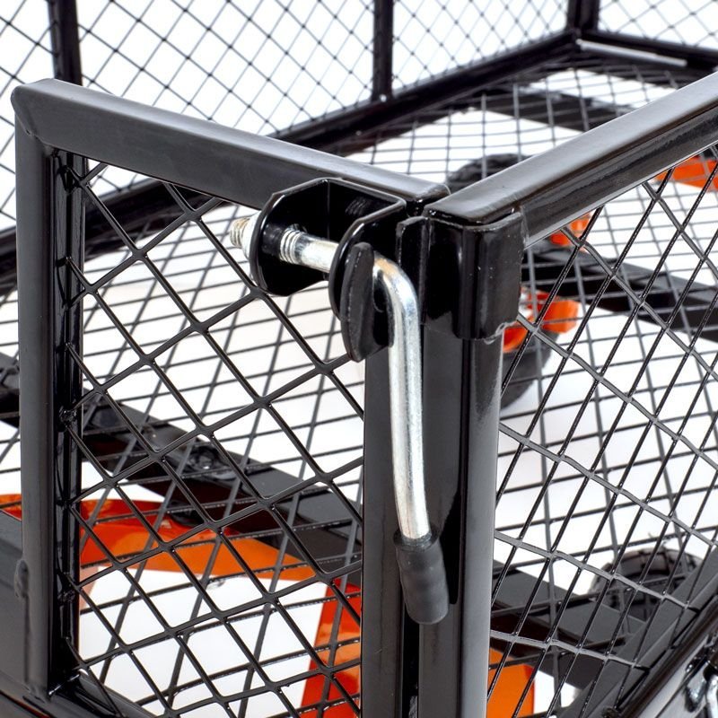 Doté de parois latérales rabattables et amovibles rapidement par clavettes, vous pourrez charger et décharger plus facilement votre chariot.