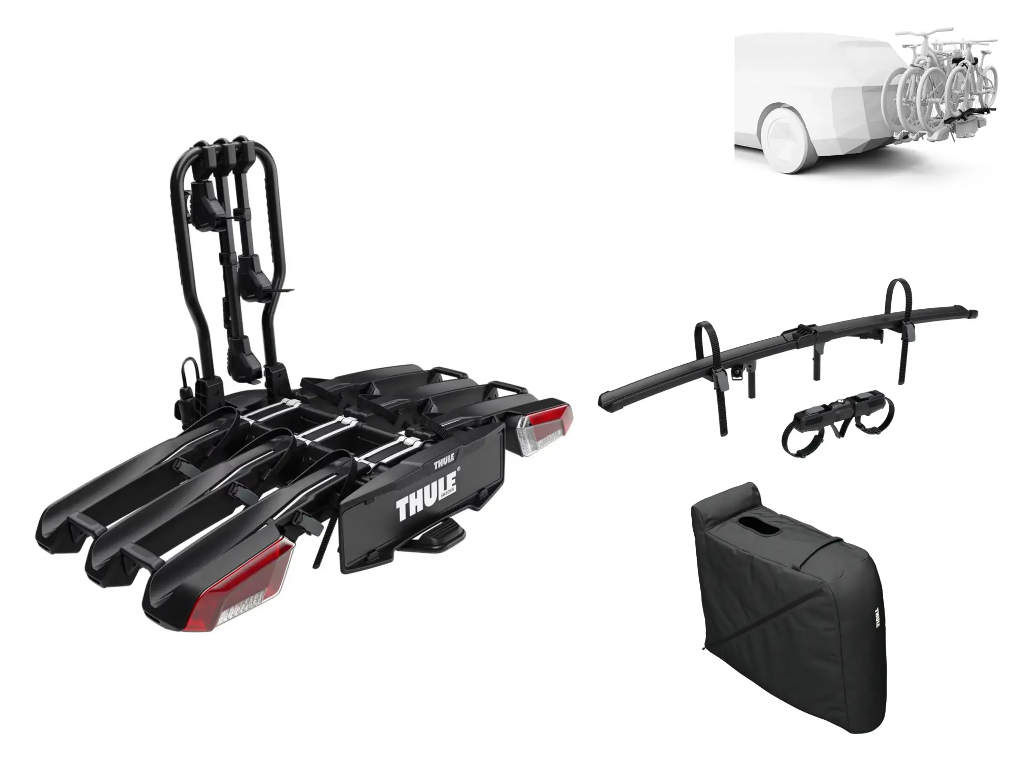 Ce porte-vélos est disponible dans des variantes allant jusqu’à 2 et 3 vélos sur le porte-vélos arrière physique. Mais cela ne signifie pas que vous ne pouvez pas emporter encore plus de vélos. Grâce au nouvel adaptateur pour vélos supplémentaires de Thule, qui se fixe à l’avant du porte-vélos arrière, vous pouvez transporter encore un vélo supplémentaire. Vous pouvez ainsi transporter jusqu’à 3, voire 4 vélos. De quoi transporter les vélos de toute la famille.