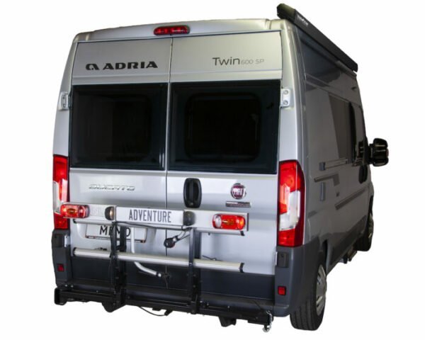 Le Van-Star Adventure a un cadre en acier noir. La plate-forme pliable est vérrouillable. Le support de portage des vélos est amovible sans outils.