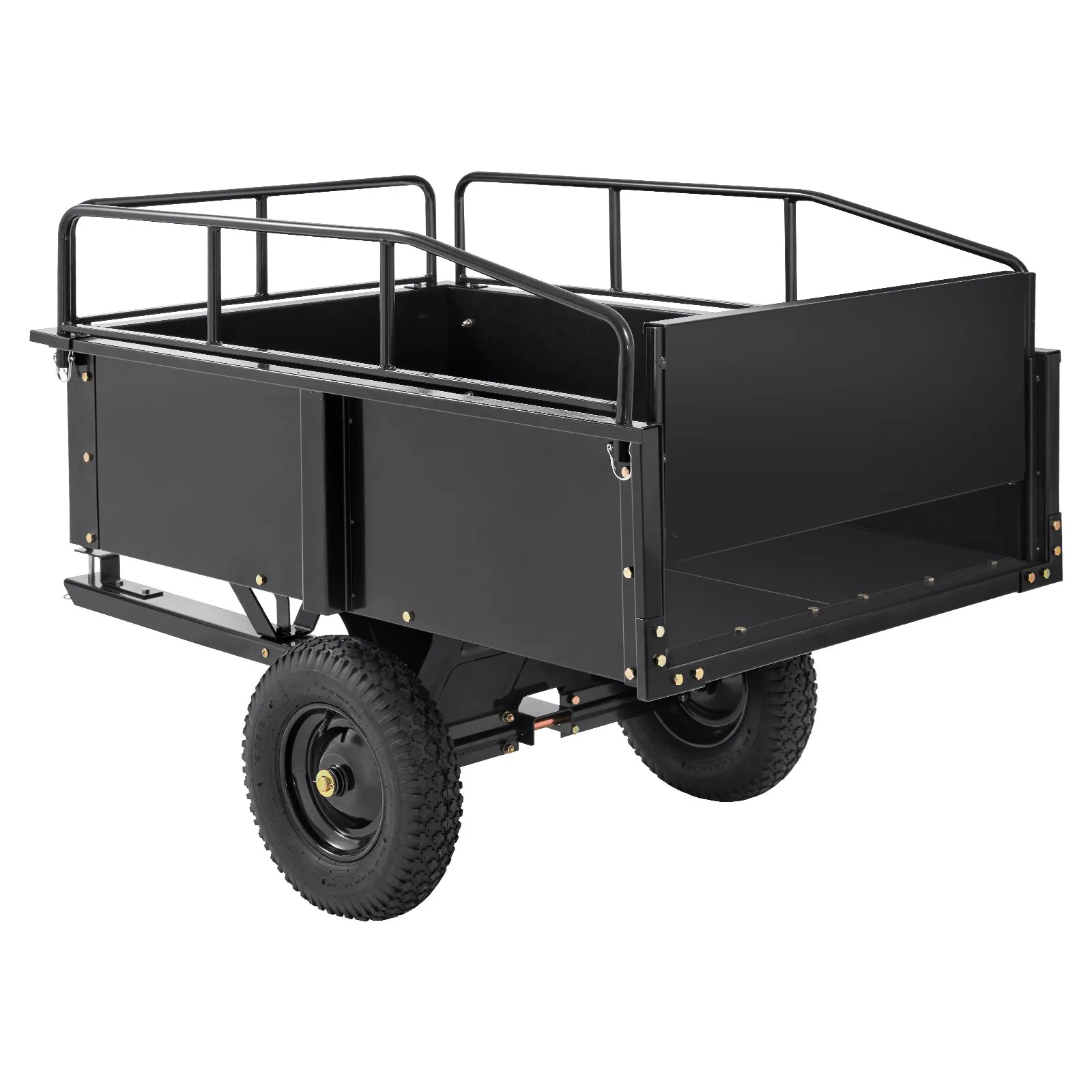 - Assistant de Transport Efficace : Contrairement à la plupart des remorques à benne basculante, cette remorque en métal peut transporter jusqu’à 340 kg d’objets. L’épaisseur des plaques latérales est augmentée à 10 mm, et le renforcement latéral est doublement sécurisé. Cela améliore la capacité de charge globale tout en empêchant efficacement la déformation.