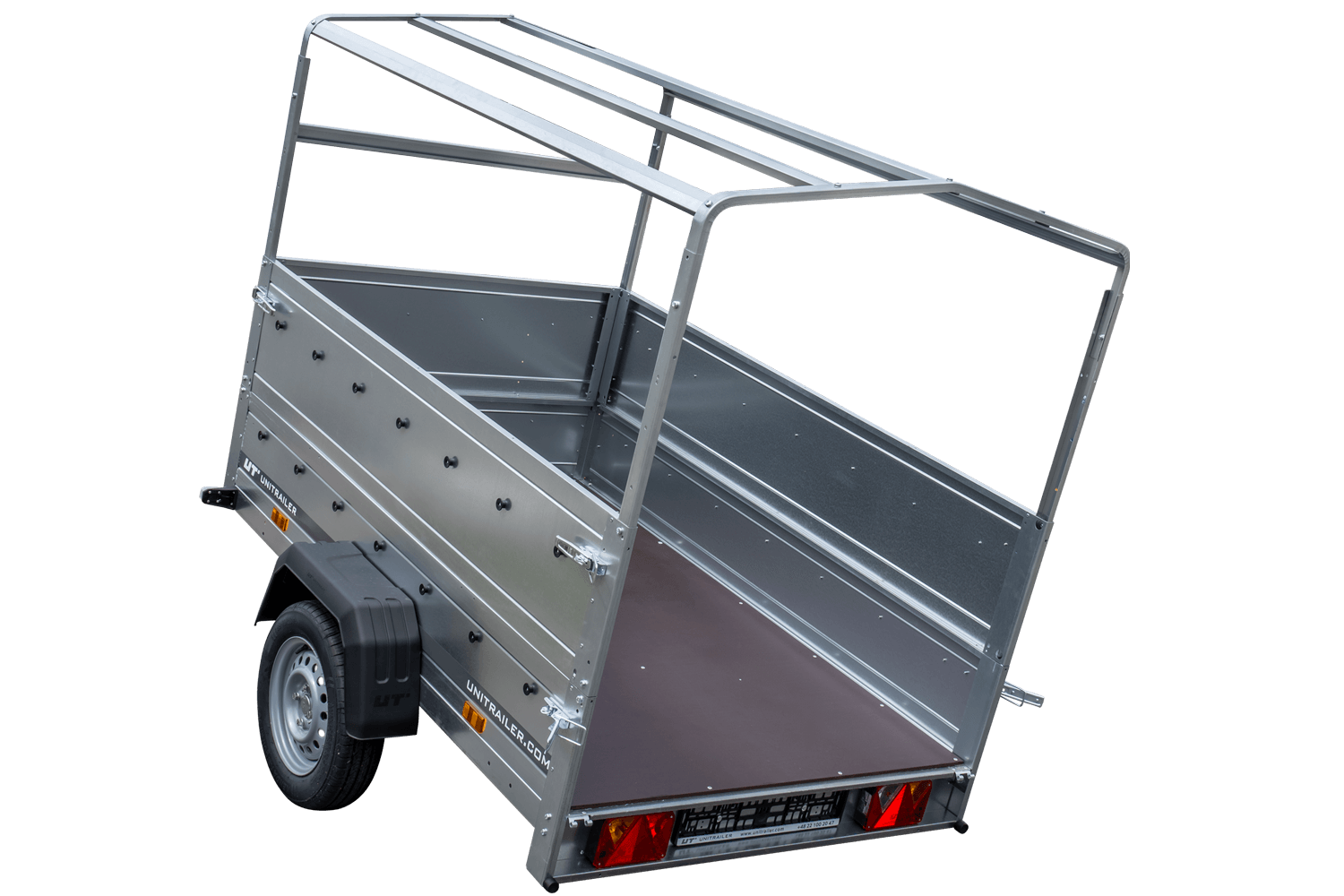 Remorque 500 kg, modèle Garden Trailer 201/R – le nouveau modèle de la marque UNITRAILER. Nous avons introduit ce modèle pour répondre aux besoins de nos clients. Le PTAC de 500 kg vous permet de posséder une remorque sans la carte grise. Dans le même temps, la valeur de PTAC peut être augmentée jusqu’à 750 kg. Lors de la commande, vous pouvez choisir le PTAC de 300 à 750 kg. Cette remorque multi-usage est très facile à charger grâce à son timon pliable. La fonction basculante (timon pliable) permet aussi de stocker la remorque verticalement dans des locaux de hauteur d’un peu plus que deux mètres. Vous ne devez pas vous inquiéter des formalités – nous envoyons tous les documents avec la remorque à votre domicile. Nous offrons une expédition dans 24 heures et une livraison à domicile pour votre confort !